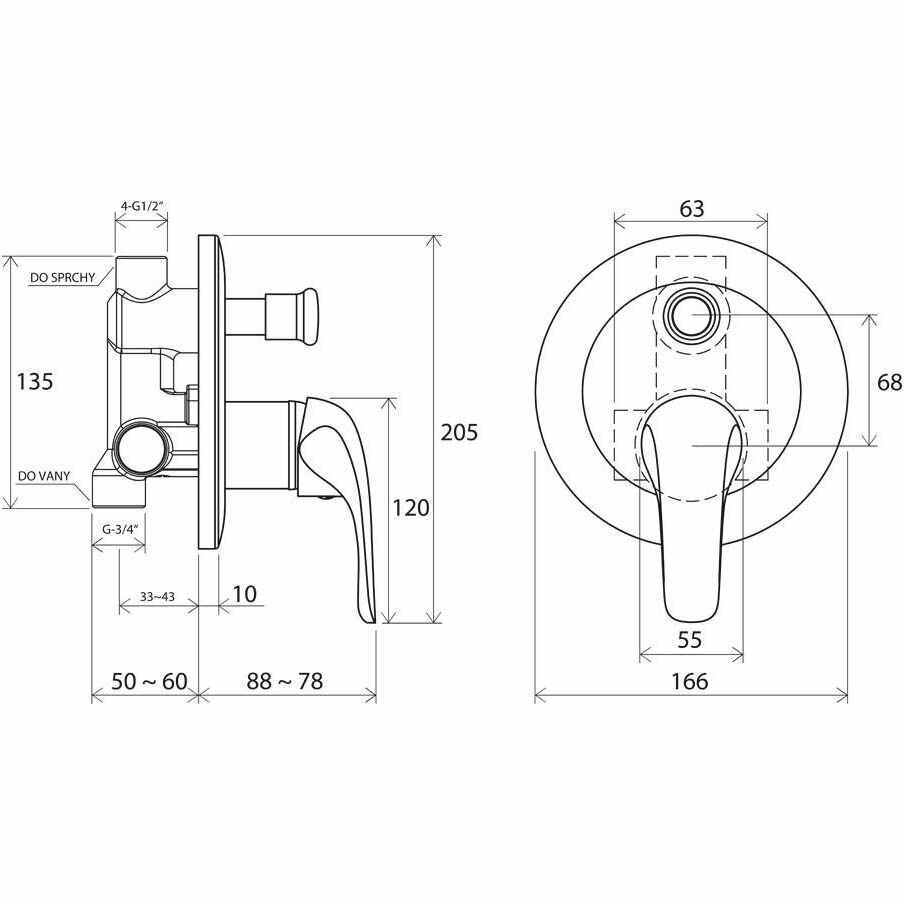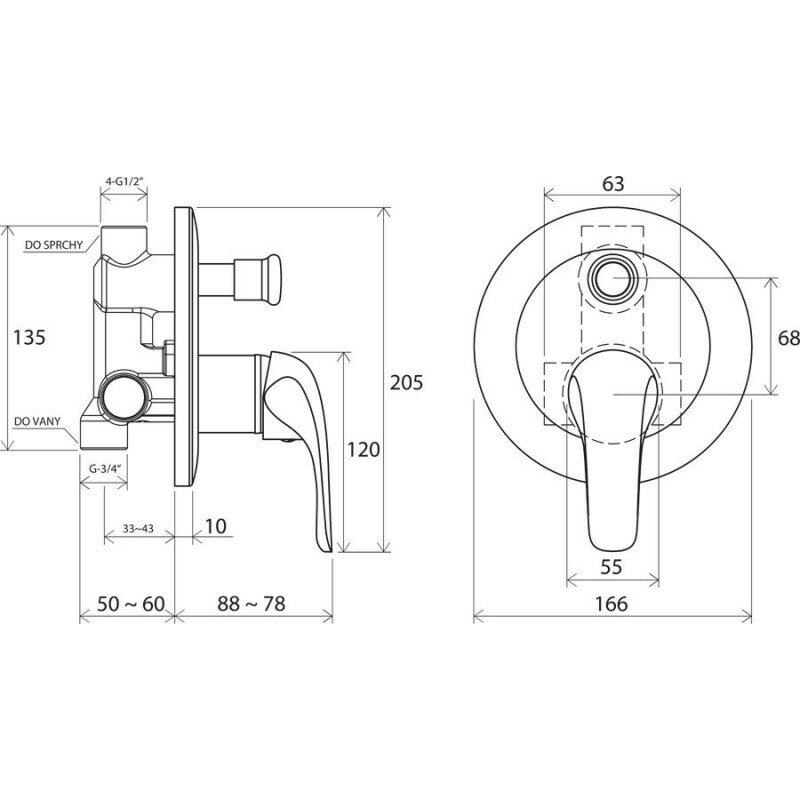 Смеситель для ванны/душа RAVAK Rosa RS 061.00 встраиваемый, в комплекте со скрытой частью