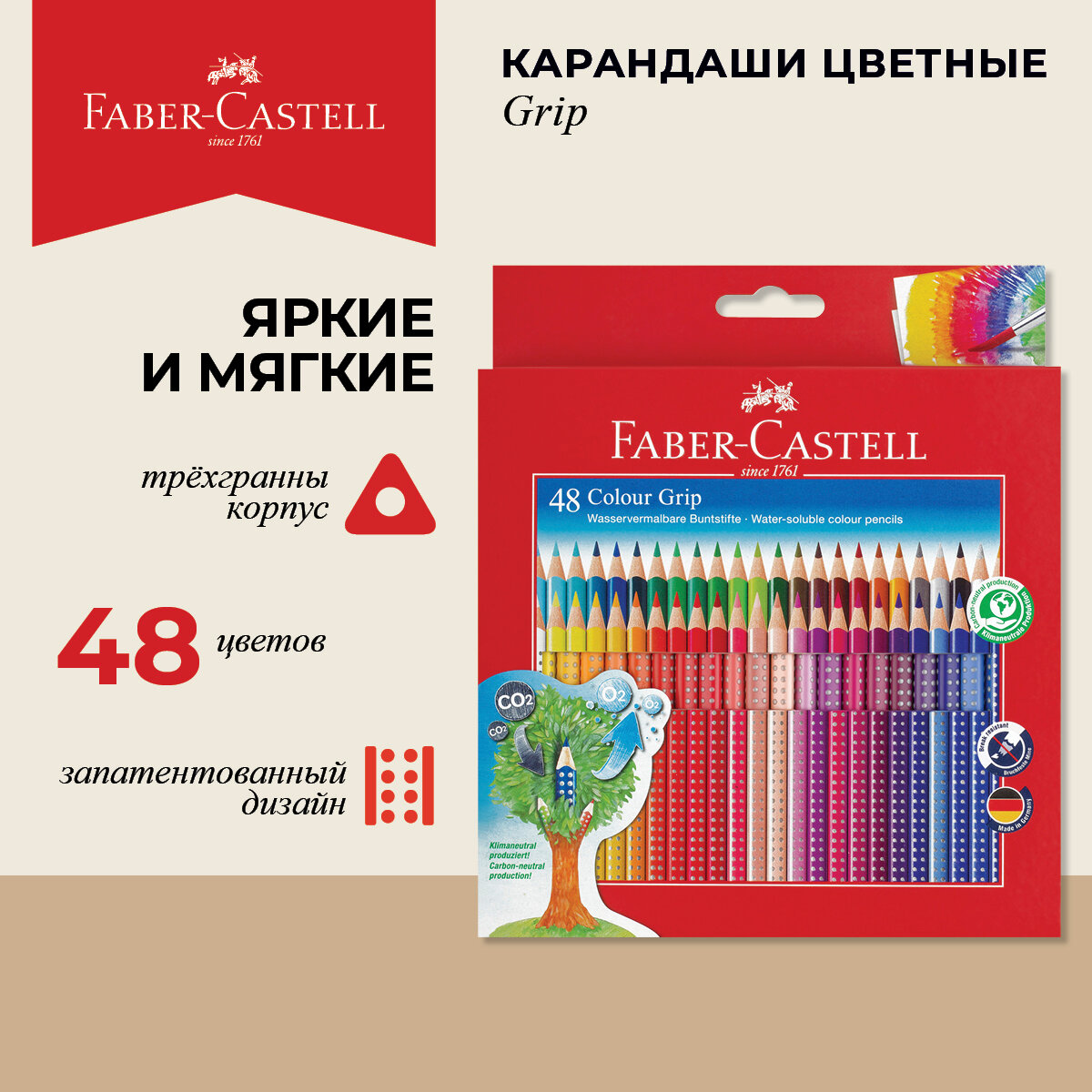 Карандаши цветные Faber-Castell "Grip", 48 цветов, трехгранные, заточенные