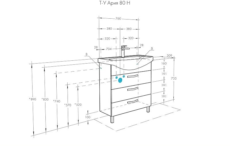 Тумба-умыв. "Ария 80 Н" 1413-1 1A141301AA010