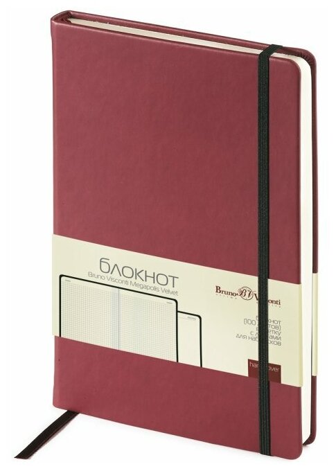 Купить Блокнот Bruno Visconti Megapolis Velvet A5 100 л. бордовый в клетку на сшивке (144х212 мм) 998267