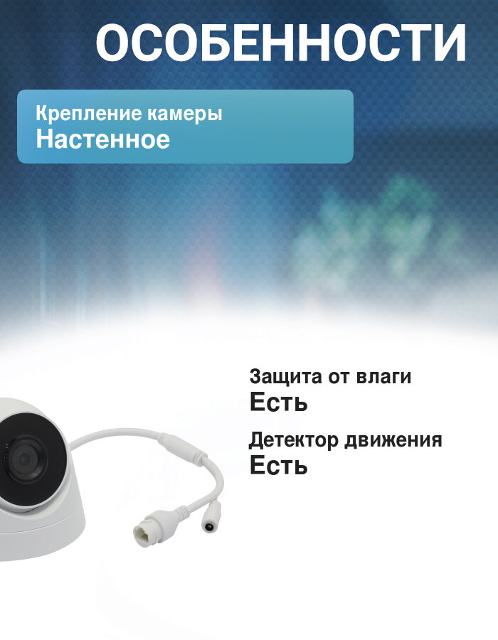 | Функции и особенности | ИК-фильтр / поддержка WDR / компенсация задней засветки / шумоподавление |