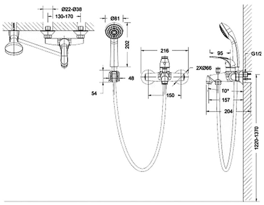 Смеситель для ванны Bravat Fit с лейкой (F6135188CP-B-RUS/F6135188CP RUS)
