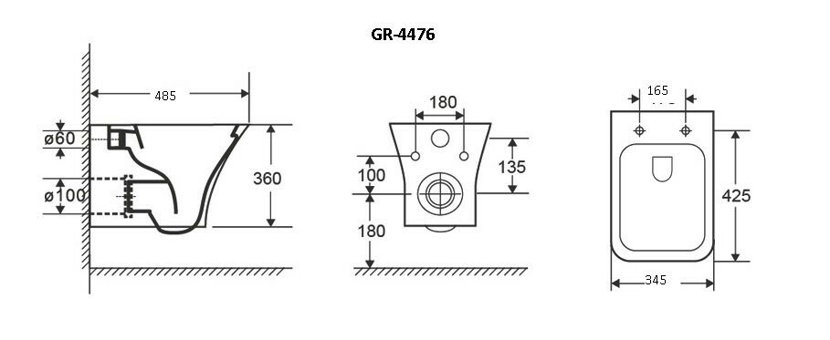 Унитаз Galaxy GR-4476S (485*345*360) подвесной безободковый с тонкой крышкой, 1 место