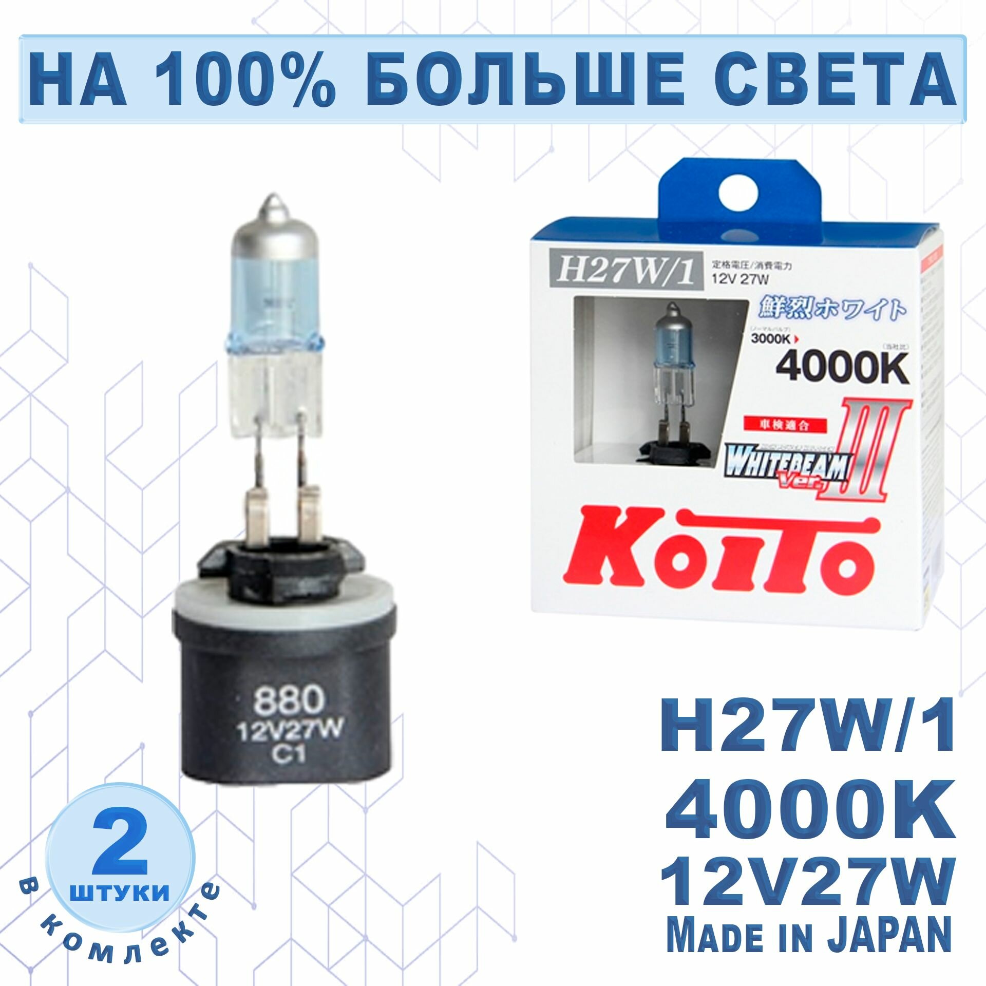 Купить Лампа высокотемпературная Koito Whitebeam H27/1 12V 27W (55W) 4000K (комплект 2 шт.) арт. P0728W