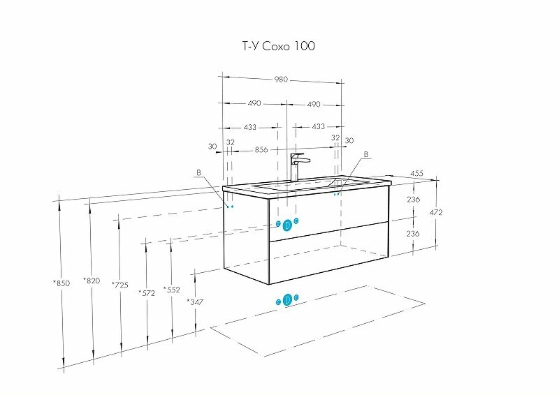 Тумба под раковину AQUATON Сохо 100 1A258201AJA00 980x455x476 подвесная, 2 ящ, графит/дуб веллингтон