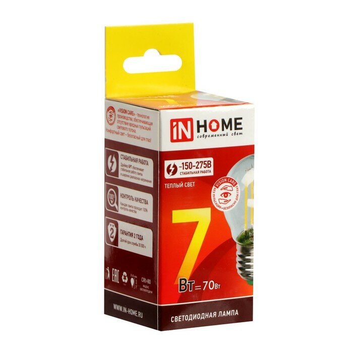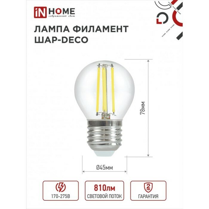 Купить Лампа светодиодная IN HOME LED-ШАР-deco, 7 Вт, 230 В, Е27, 3000 К, 810 Лм, прозрачная