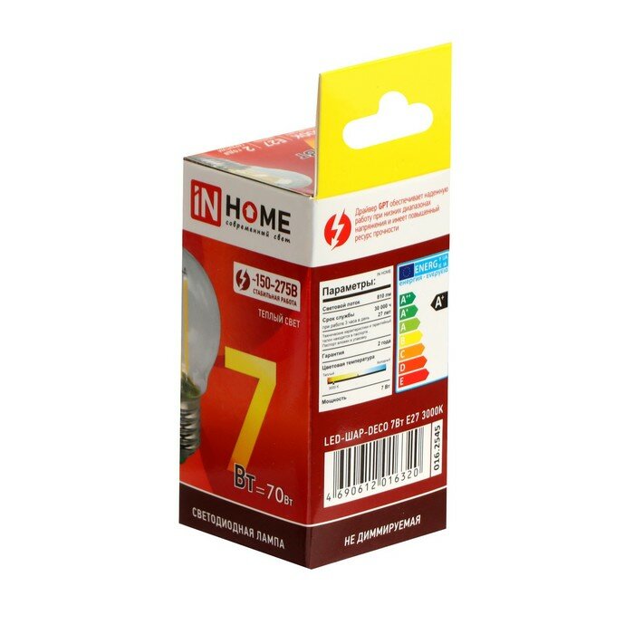 Ниже Вы можете прочитать отзывы на Лампа светодиодная IN HOME LED-ШАР-deco, 7 Вт, 230 В, Е27, 3000 К, 810 Лм, прозрачная, ознакомится с подробными характеристиками, посмотреть интересные обзоры и фотографии на Лампа светодиодная IN HOME LED-ШАР-deco, 7 Вт, 230 В, Е27, 3000 К, 810 Лм, прозрачная.