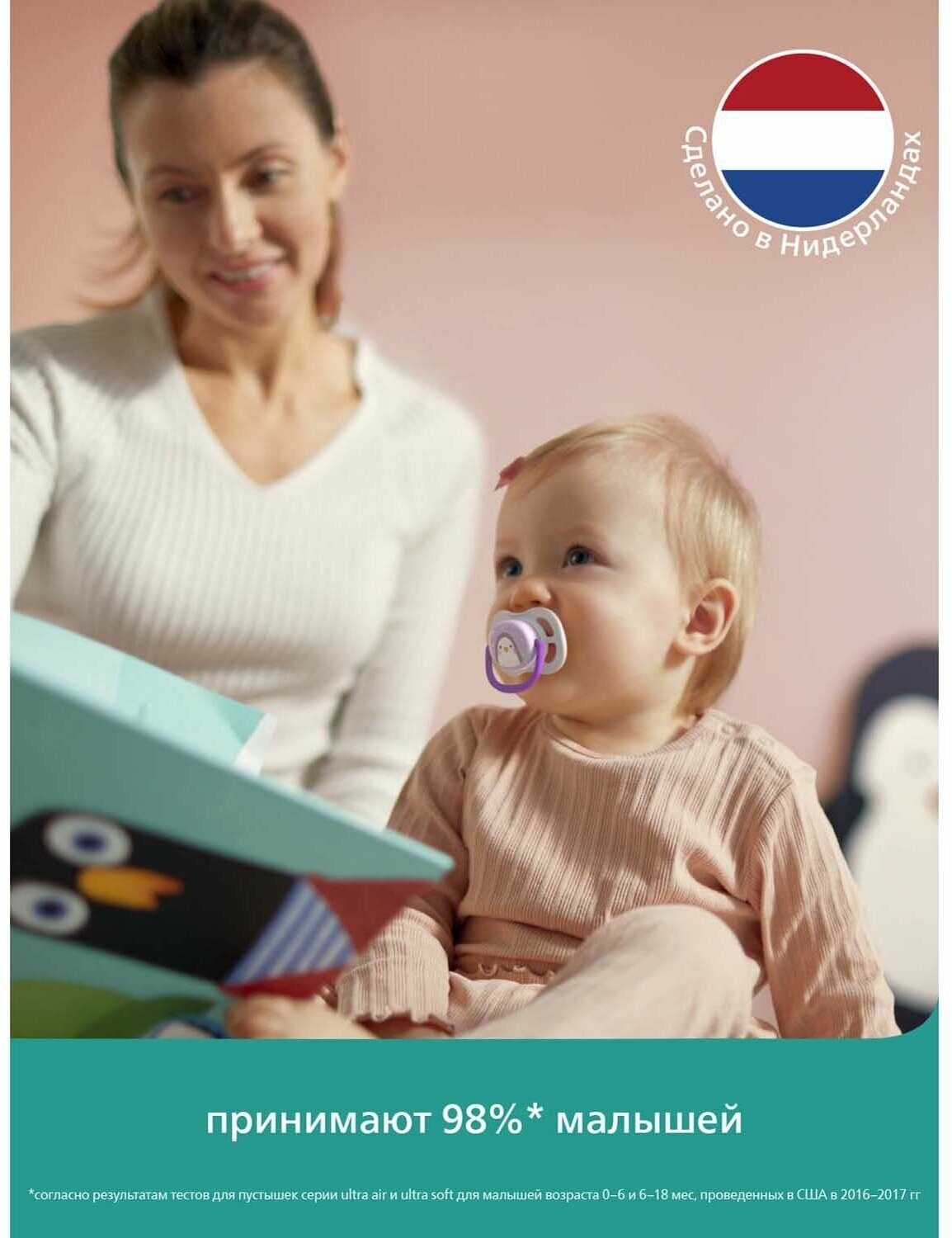 Детский товар Philips Пустышка ultra air Lime, Пингвин/Птичка, 0-6 мес, 2 шт, для девочек