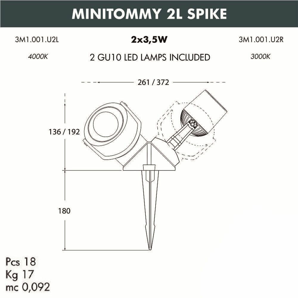 Купить Ландшафтный светильник Fumagalli MINITOMMY 2L SPIKE 3M1.001.000.LXU2L