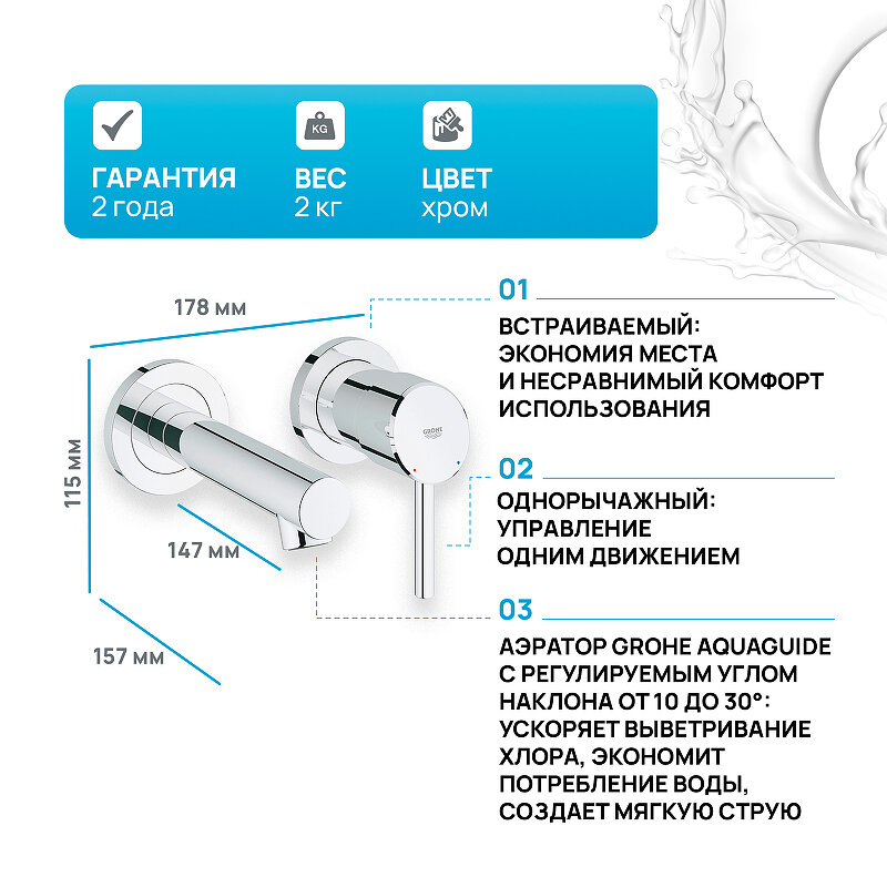Смеситель для раковины Grohe Concetto new 19575001 Хром интересное: