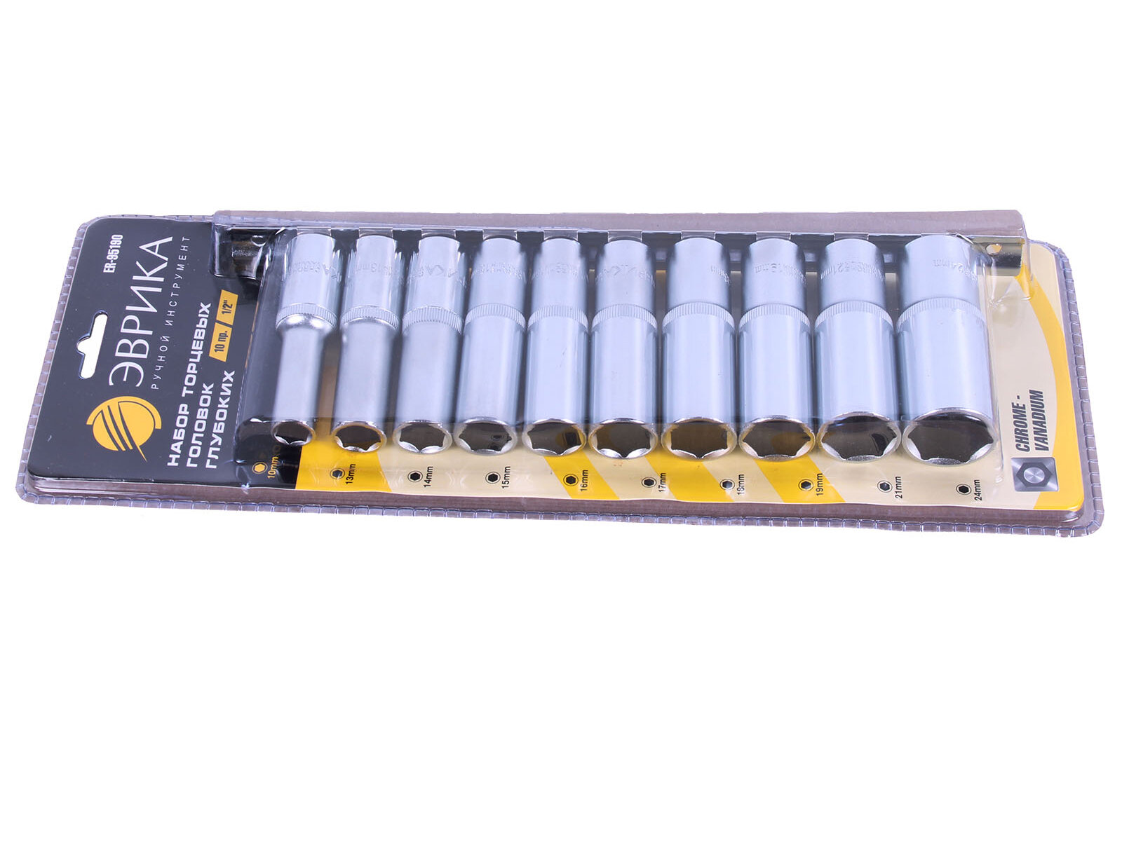 Купить Набор торцевых головок 1/2 глубоких 10-24мм 10 предметов эврика
