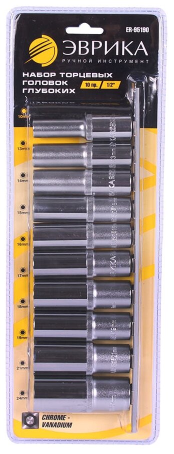 Набор торцевых головок ER-95190 1/2" DR глубоких 10-24мм 10 предметов эврика /1/5/10