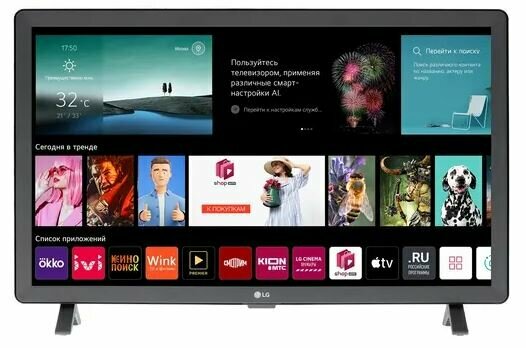 Монитор ЖК 24" LG 24TQ520S-PZ 24", HD, webOS Smart TV, Wi-Fi, DVB-T2/C/S2, 2.0ch 2х5W, 2хHDMI, 1хUSB, темно серый