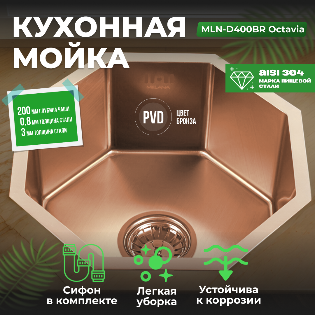 Мойка из нержавеющей стали MELANA D400BR Octavia Profline 1,2/200 цвет бронза медь, врезная фигурная нестандартная
