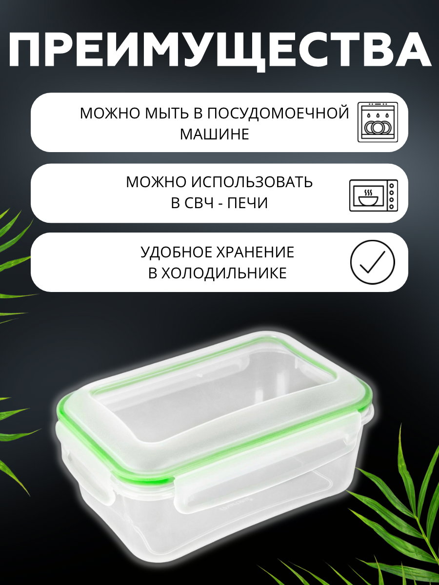 Контейнер объемом 1500 мл из жаропрочного стекла с герметичной крышкой из пластика