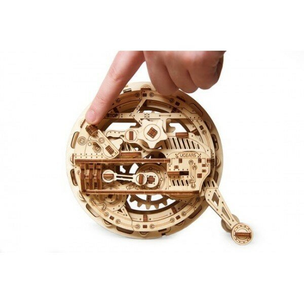 | Плюсы: | Не очень сложная, но в тоже время не очень лёгкая модель из серии UGEARS, но в то же время есть механизм убирания колёс и их блокировки, стоп-старт рычаг. |