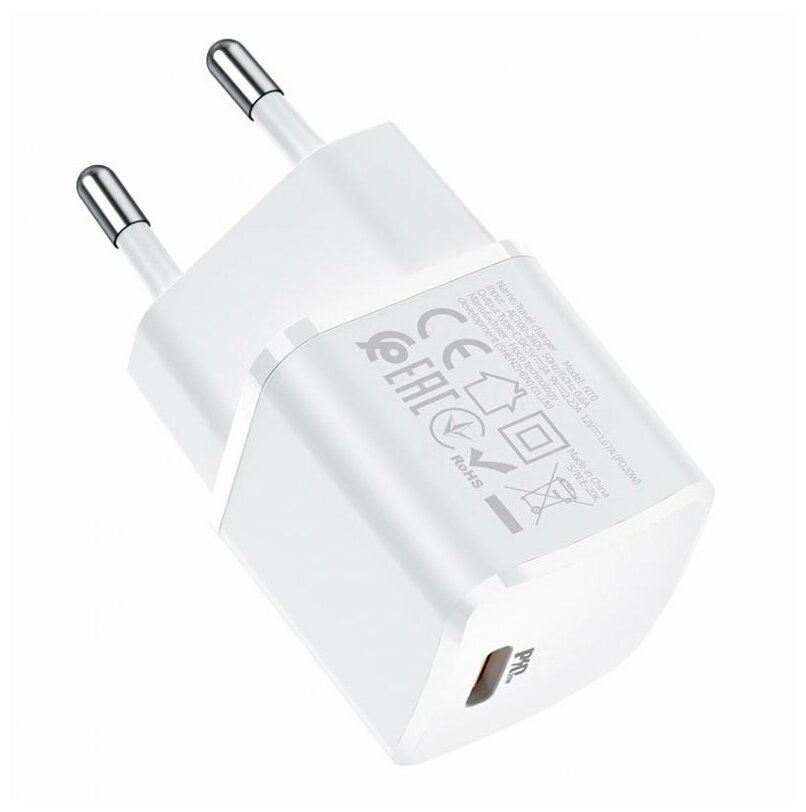 Купить Сетевое зарядное устройство (СЗУ) Hoco N10 (Type-C PD) 3 А, белый