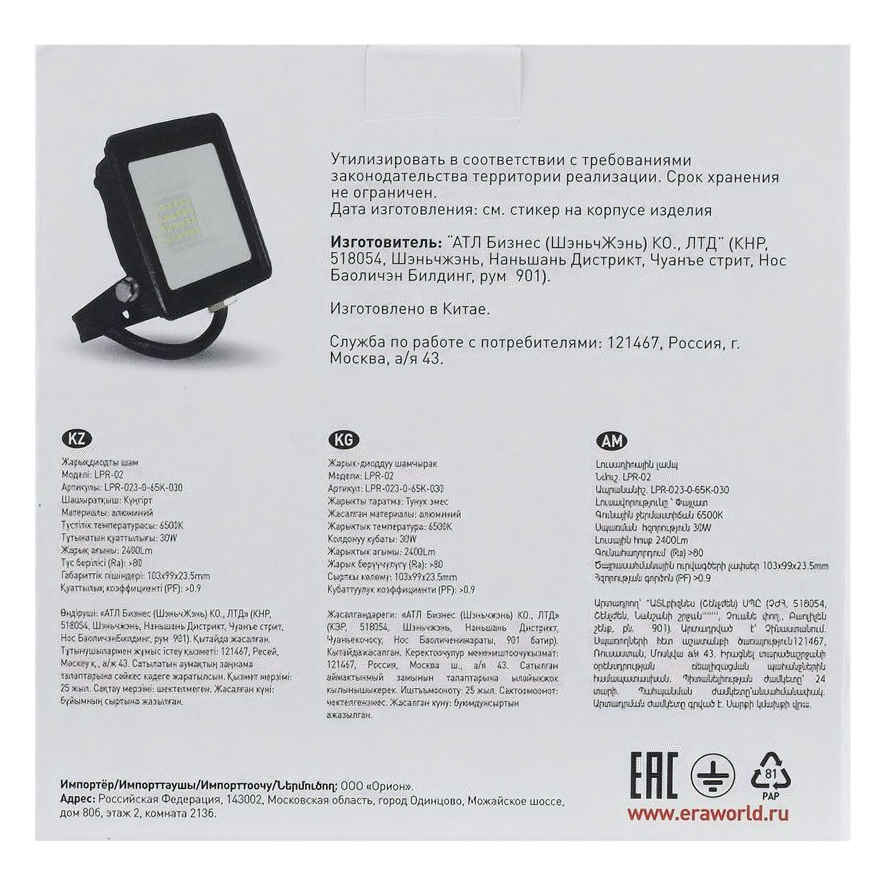 Ниже Вы можете прочитать отзывы на Прожектор светодиод 30Вт 6500К 2400Лм черный IP65 СДО LPR-023-0-65K-030 ЭРА, ознакомится с подробными характеристиками, посмотреть интересные обзоры и фотографии на Прожектор светодиод 30Вт 6500К 2400Лм черный IP65 СДО LPR-023-0-65K-030 ЭРА.