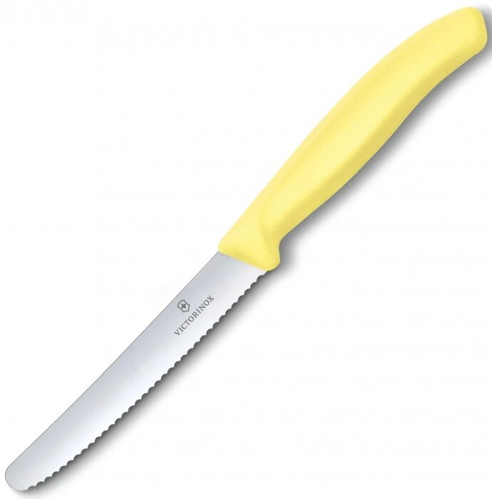 Набор из 2 кухонных ножей VICTORINOX Swiss Classic Trend Colors: нож для чистки томатов и киви и столовый нож с волнистым лезвием 11 см, нержавеющая сталь, рукоять из пластика светло-желтого цвета (6.7116.23L82)