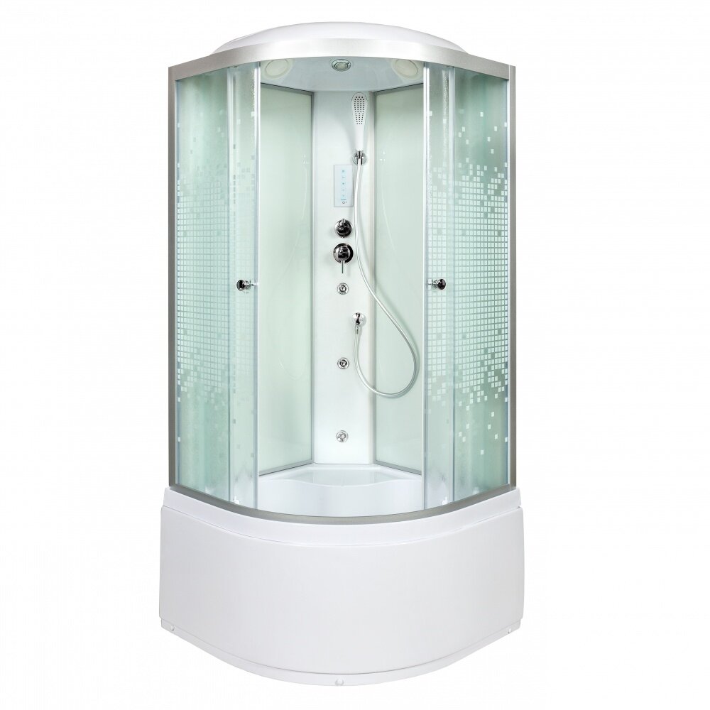 Душевая кабина Deto L L910GM+EL 100x100 с гидромассажем и электрикой, стекло с рисунком, профиль хром