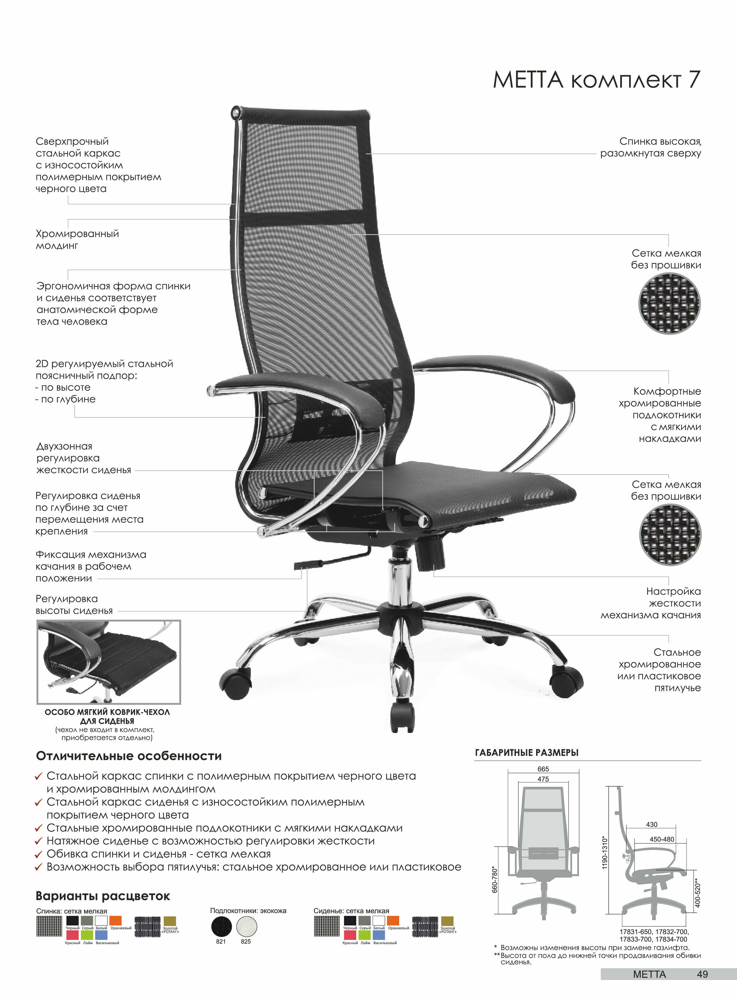 | Конструктивные особенности | подлокотники / колеса (ролики) / газлифт / поясничный упор |