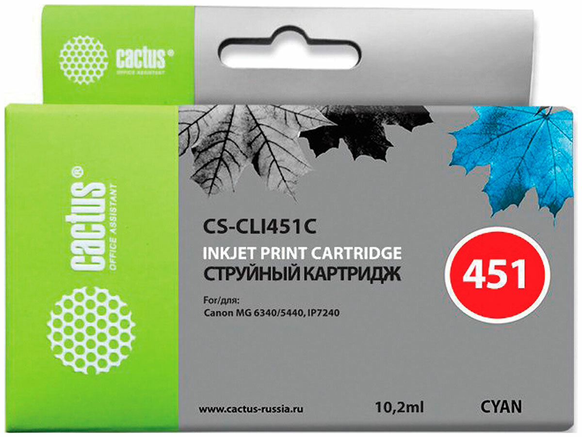 Картридж Cactus CS-CLI451C струйный картридж (Canon CLI-451C - 6524B001) 9,8 мл, голубой