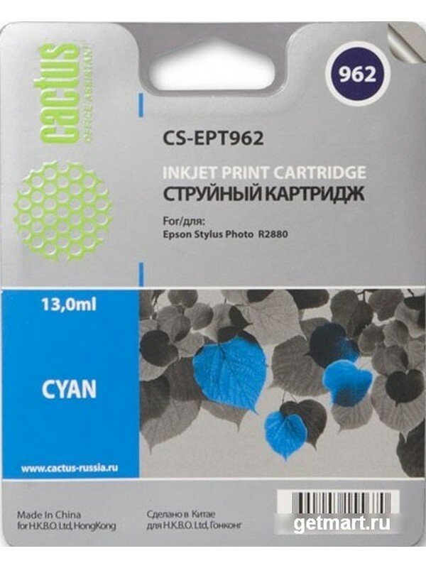 Картридж струйный Cactus CS-EPT962 голубой (13мл) для Epson Stylus Photo R2880 CS-EPT962 .