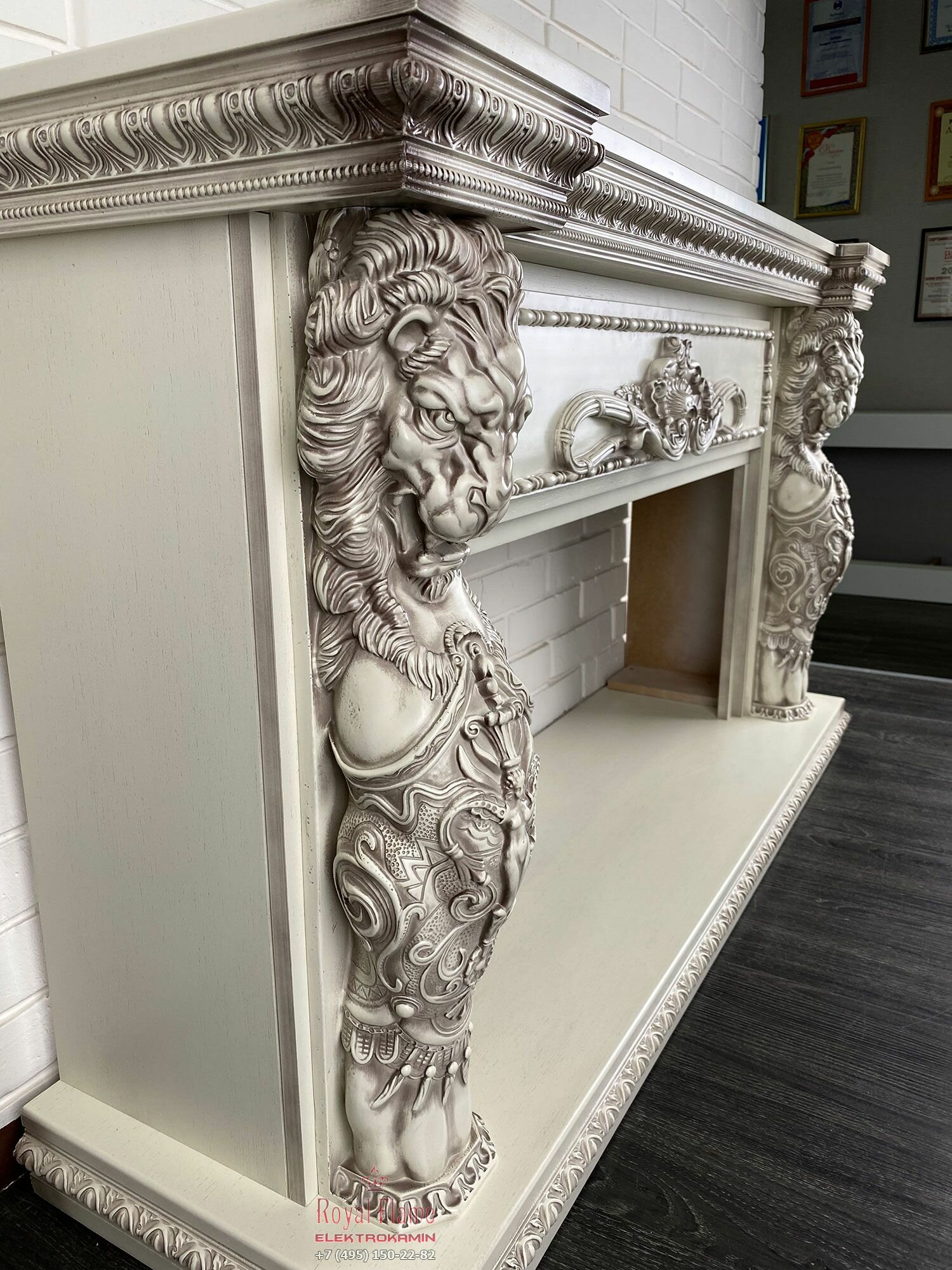 Электрический камин Royal Flame Windsor 42 (слоновая кость с темной патиной) с очагом Vision 42 LOG LED