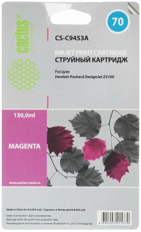 Ниже Вы можете прочитать отзывы на Cactus Картридж струйный CS-C9453A 70 пурпурный 130мл для HP DJ Z3100, ознакомится с подробными характеристиками, посмотреть интересные обзоры и фотографии на Cactus Картридж струйный CS-C9453A 70 пурпурный 130мл для HP DJ Z3100.