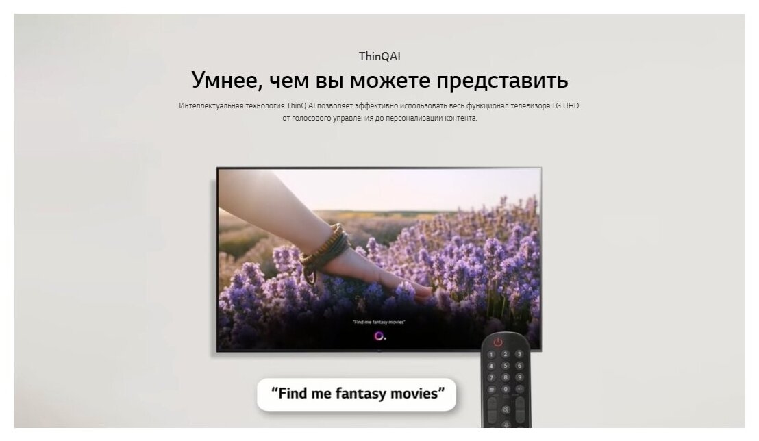| Минусы: | Совместимости с умным домой яндекса нет. При сканировании подключенных к LG ThinQ устройств через связанный аккаунт приложение "Умный дом" сообщает что новых устройств нет. При нажатии на кнопку с логотипом умного дома Яндекса на экране телевизора появляется сообщение о том, что данная функция пока не поддерживается. |