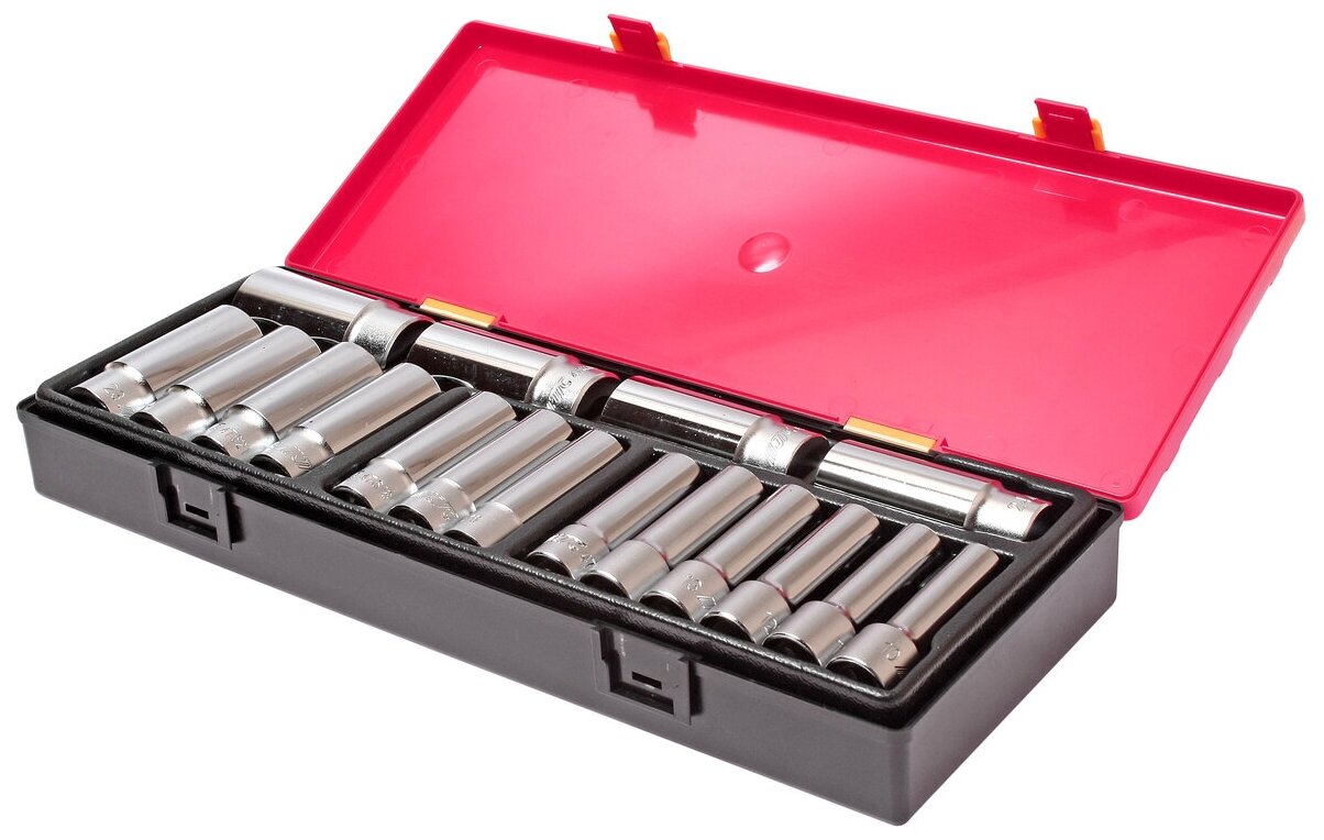 Набор глубоких шестигранных торцевых головок 1/2" 10-32мм 17шт JTC-K4171