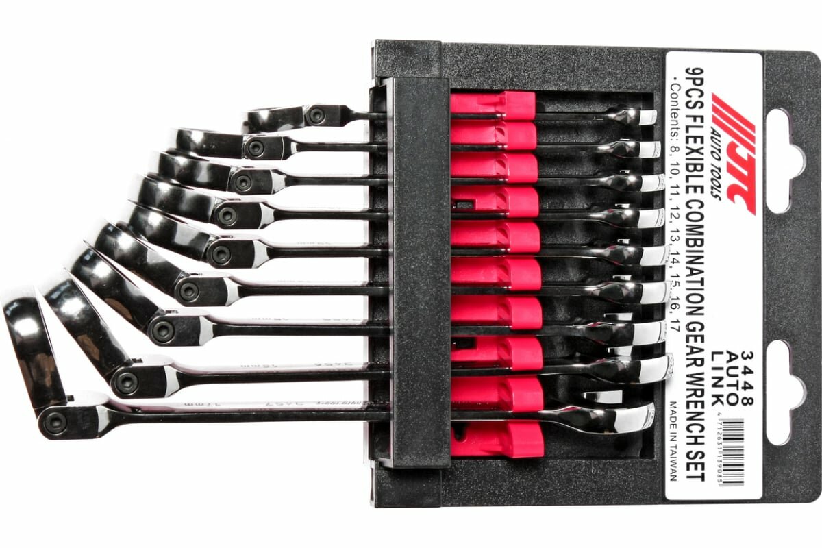 Набор ключей JTC комбинированных шарнирных с трещоткой 8-17мм, 9 предметов