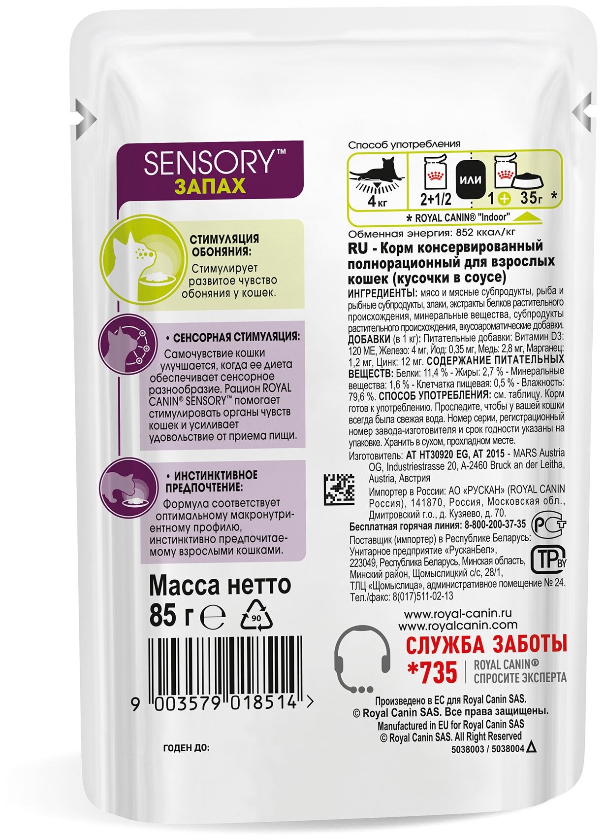 Влажный корм для кошек Royal Canin Sensory Smell (сенсори запах), стимулирующий обонятельные рецепторы , кусочки в соусе, пауч 85 г х 12 шт
