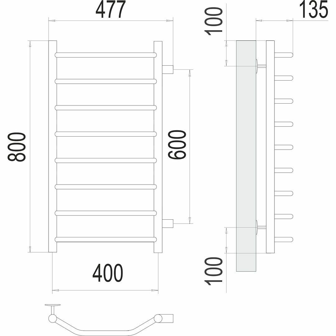 Полотенцесушитель TERMINUS Стандарт П8 (ШВ:500х800) водяной, нерж.сталь, боковое подкл. м/о 600