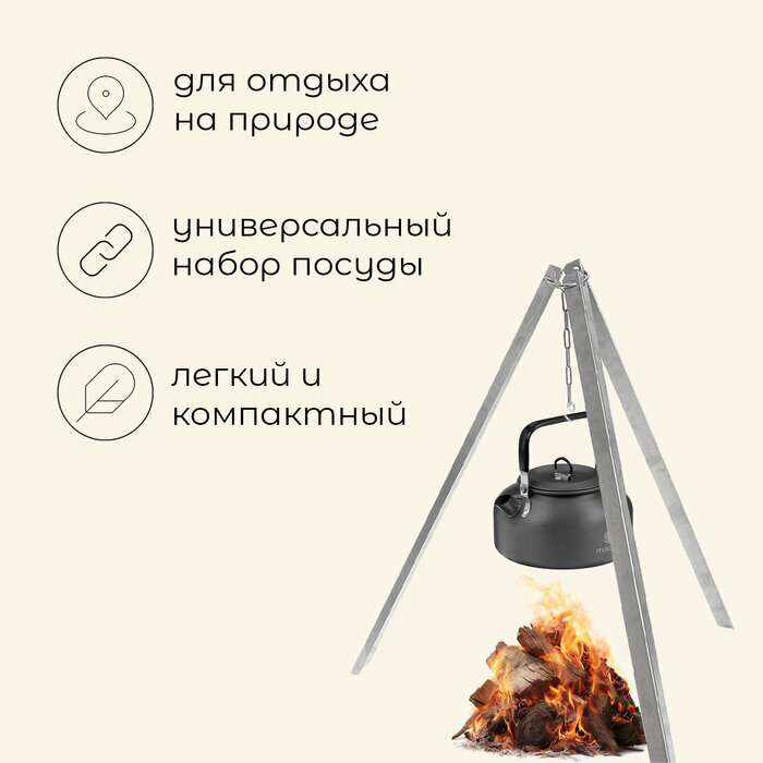 Maclay Набор посуды туристический: чайник, кастрюля, сковорода, 3 чашки, черпак, лопатка, губка