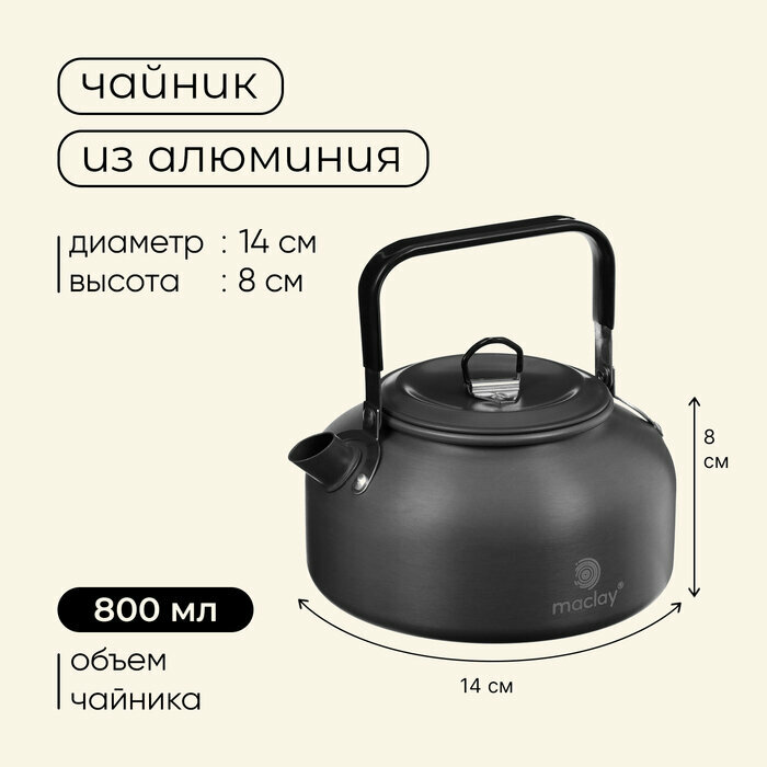 Набор туристической посуды Maclay: чайник, кастрюля, сковорода, 3 чашки, черпак, лопатка, губка