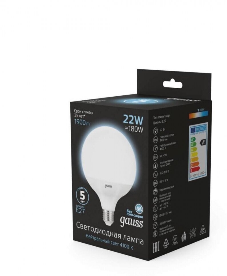 Ниже Вы можете прочитать отзывы на Лампа светодиодная gauss 105102222, E27, G125, 22 Вт, 4100 К, ознакомится с подробными характеристиками, посмотреть интересные обзоры и фотографии на Лампа светодиодная gauss 105102222, E27, G125, 22 Вт, 4100 К.