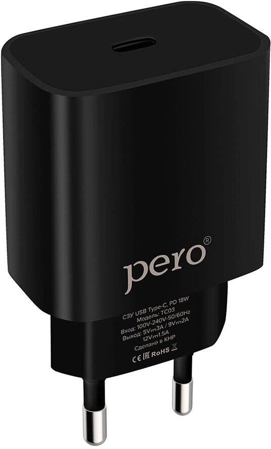 Купить Сетевое зарядное устройство Pero Tc03, USB Type-C, 3 А, 18W, быстрая зарядка, черное Pero 9568375 .