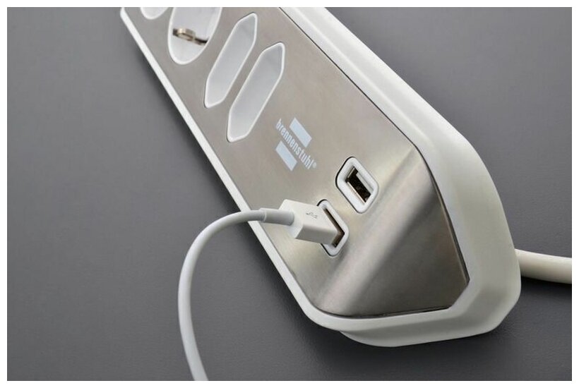 1153590420 Brennenstuhl удлинитель Extension Socket ,угловой, 2м., 4 роз., 2 USB 3,1А, серебристо-белый