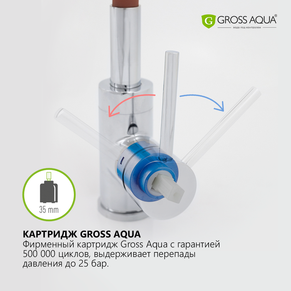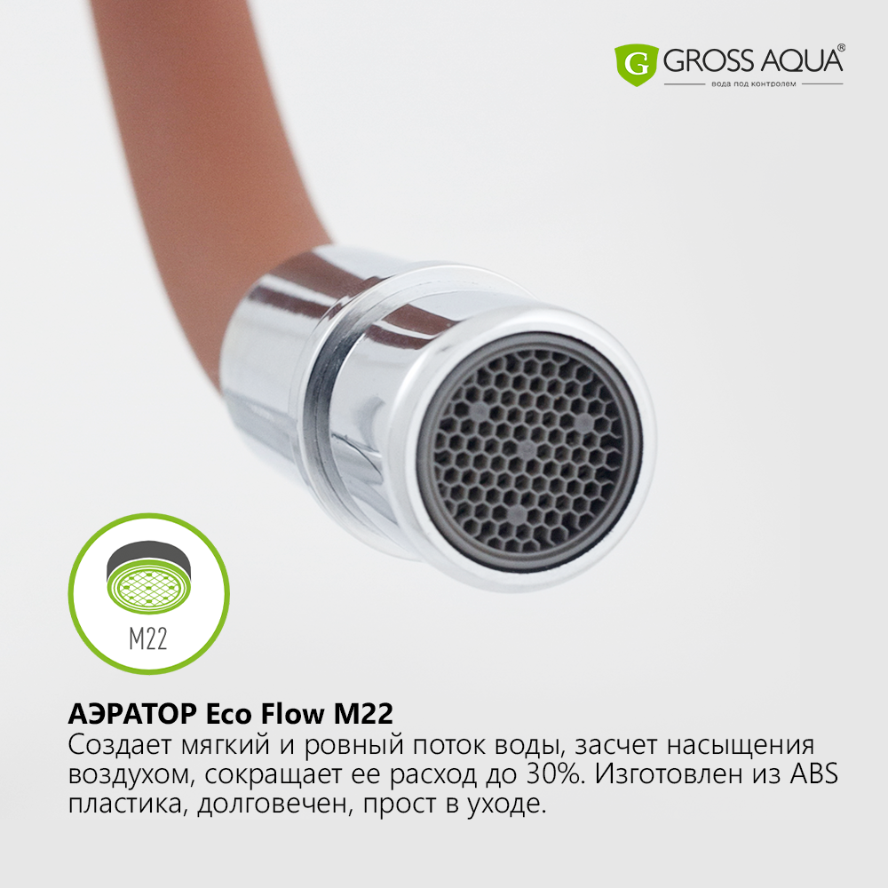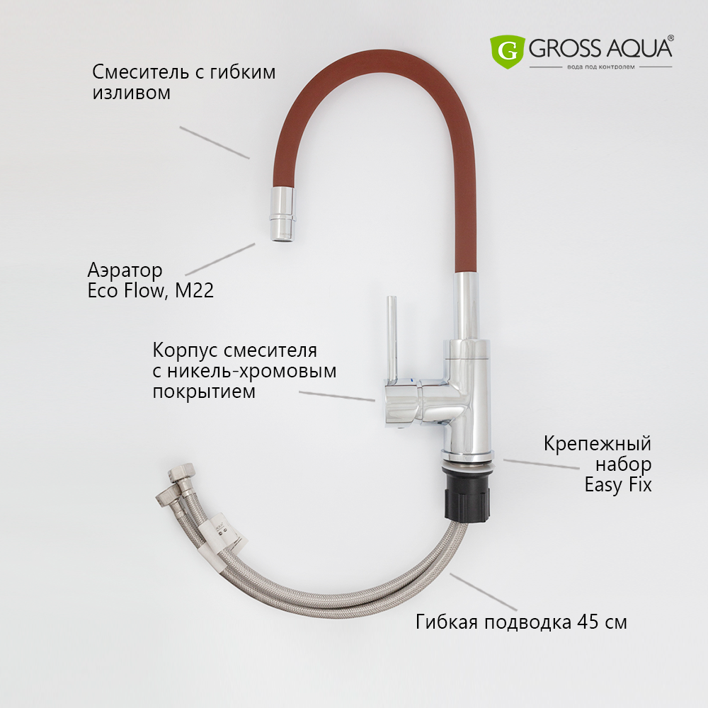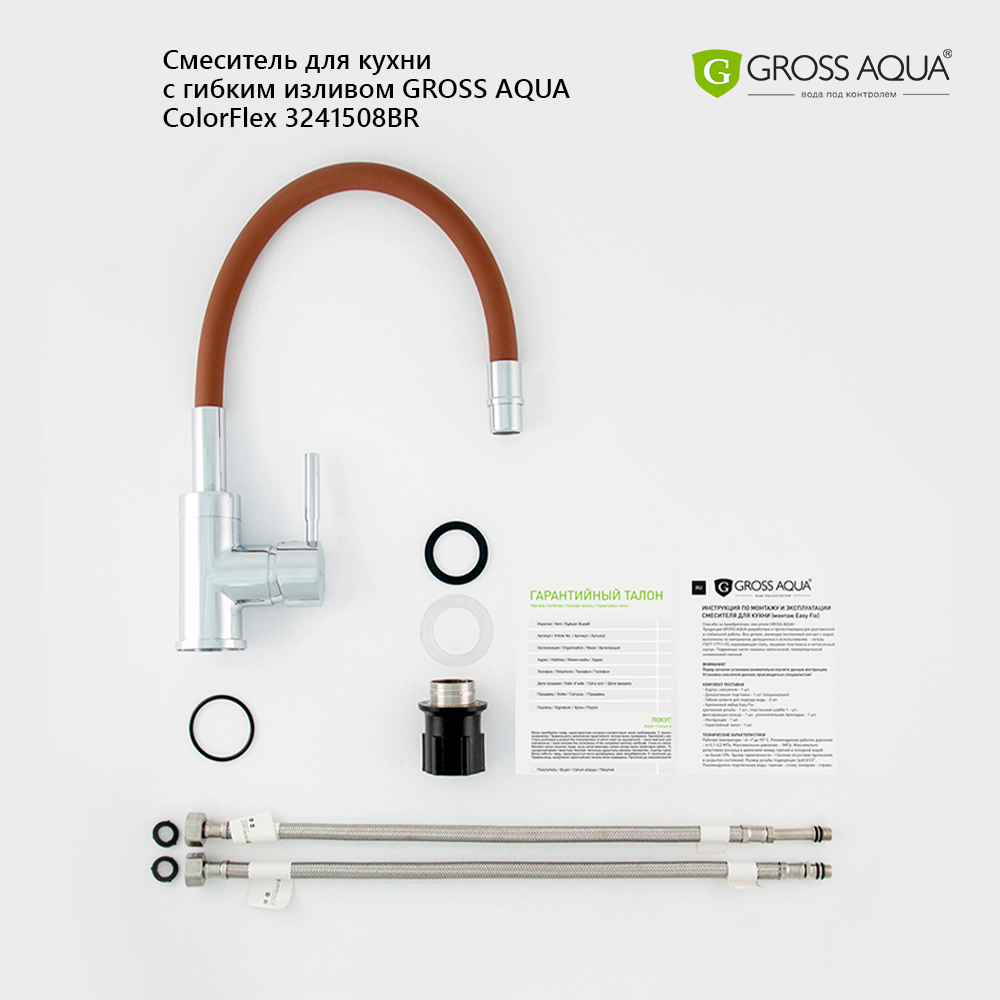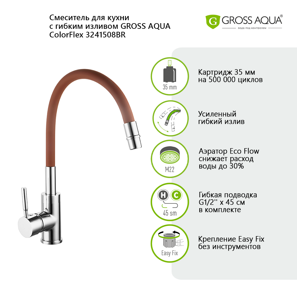 СохранитьСмеситель для кухни с гибким силиконовым изливом GROSS AQUA ColorFlex, латунь, хром, коричневый, 3241508BR. интересное: