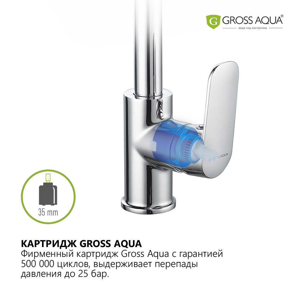 | Дополнительная информация | картридж Gross Aqua 35 мм, аэратор Eco Flow M24 с функцией снижения расхода воды |
