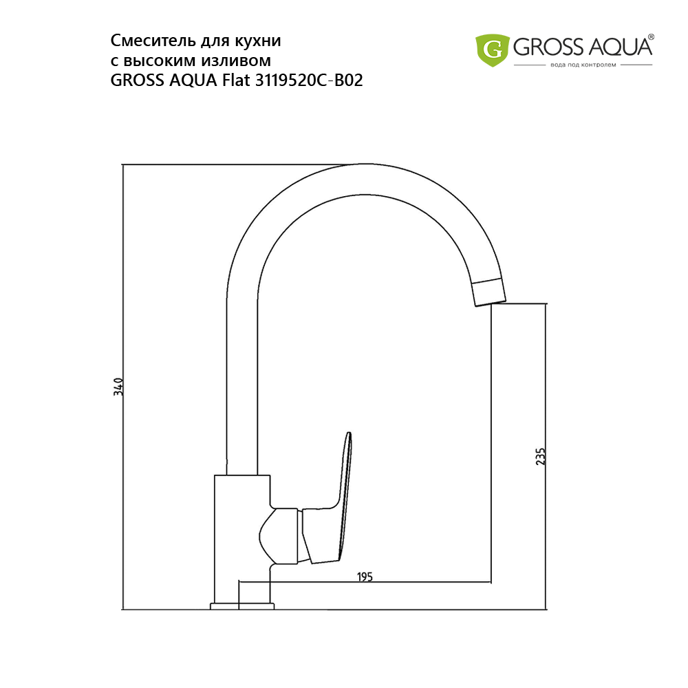 Смеситель GROSS AQUA Flat для кухни с высоким изливом 3119520C-B02
