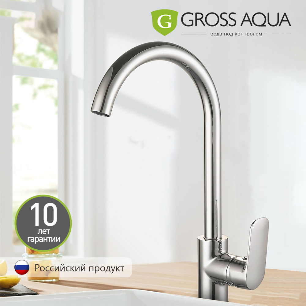 Смеситель для кухни с высоким поворотным изливом, GROSS AQUA Flat, латунь, хром, 3119520C-B02. интересное: