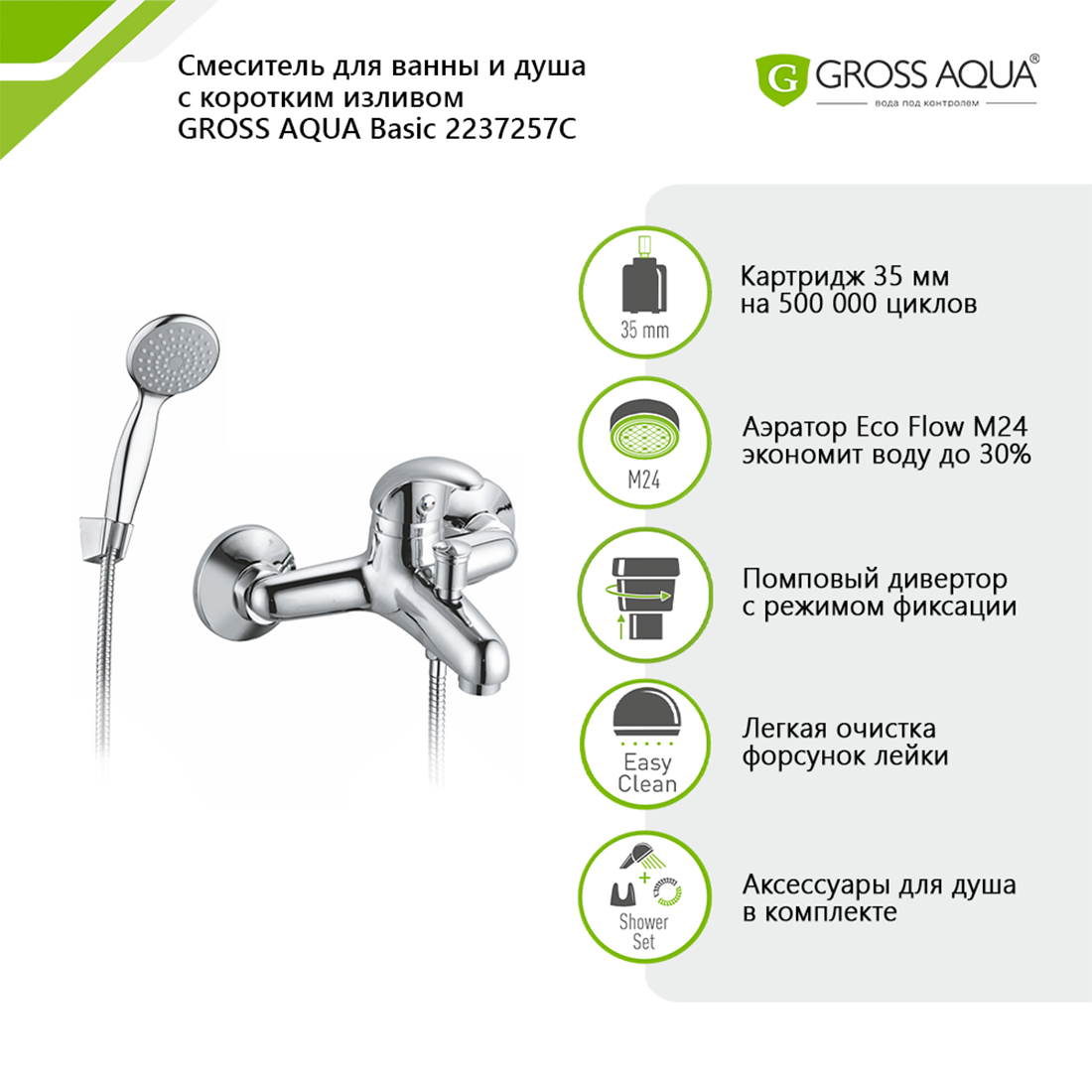 Смеситель Gross Aqua для ванны и душа с коротким изливом 2237257C Basic