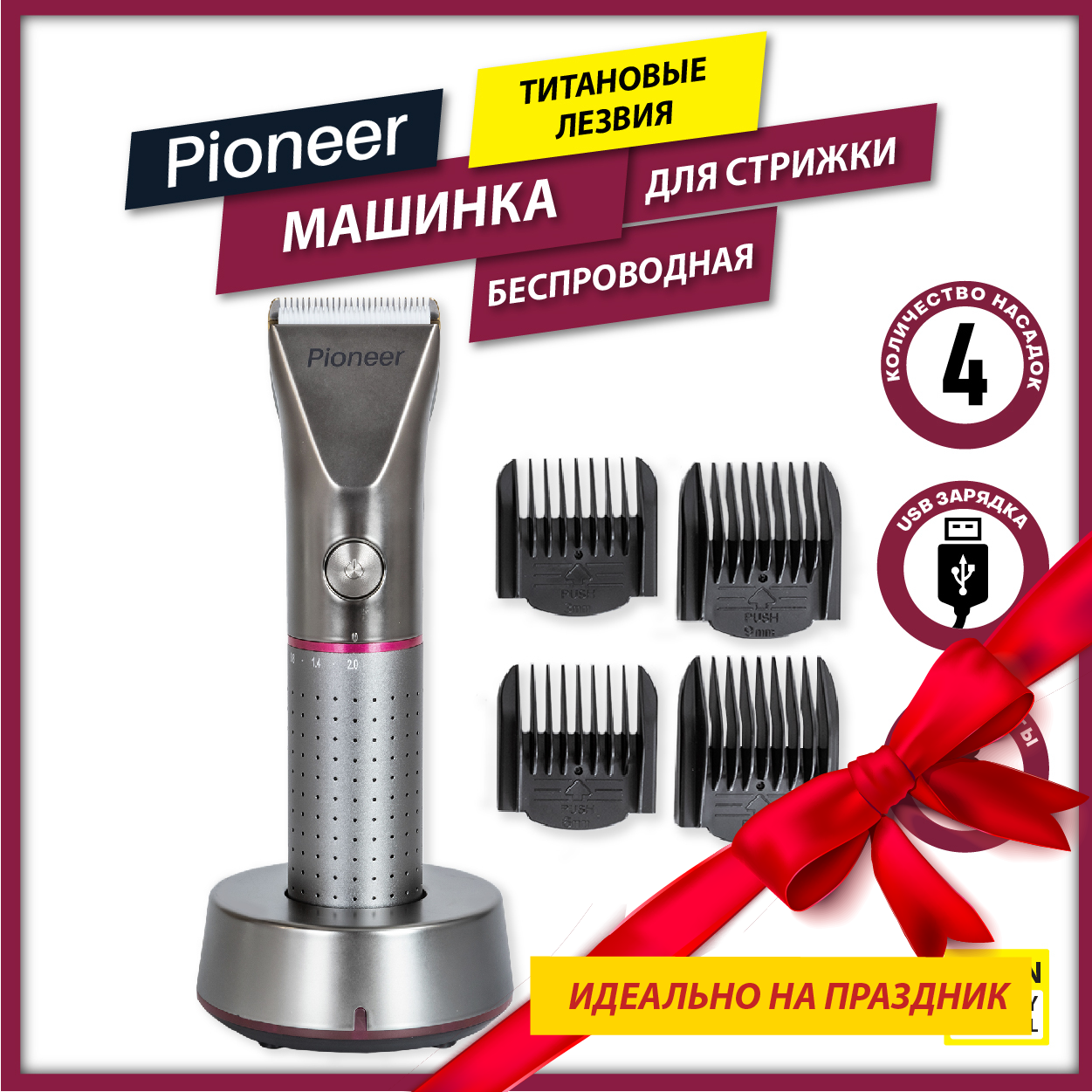 Машинка для стрижки Pioneer беспроводная портативная, 4 насадки 3 мм, 6 мм, 9 мм и 12 мм, USB-кабель, титановые лезвия интересное: