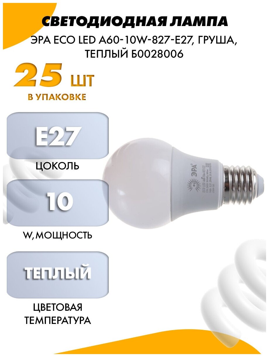 Лампа светодиодная smd A60-10w-827-E27_ECO грушевидная, ЭРА Б0028006 (1 шт.)