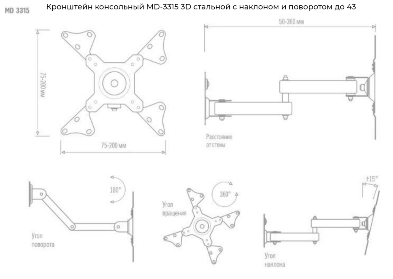 MD 3315 для 15-43" черный интересное: