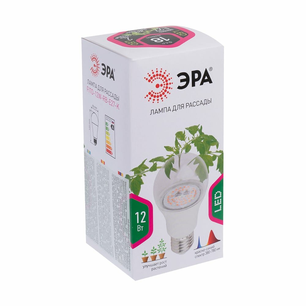 Лампа светодиодная ЭРА фито тип цоколя E27, красно-синий спектр, 10 Вт, цвет. темп. 1310К (FITO-10W-RB-E27-K)