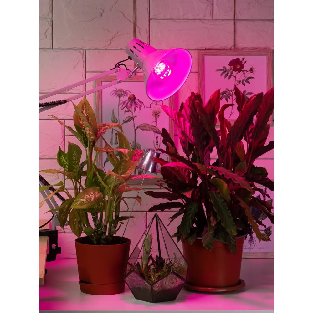 | Плюсы: | Лампочка очень подошла. Искала лампу для подсветки, но они все дорогие. Решила купить просто лампу, вставила в навесную перед окном, повесила на штору, и подсветка готова. Всё оправдалось, и цветы начали лучше расти. Только держать на удалении, иначе начнут сохнуть концы листьев. |