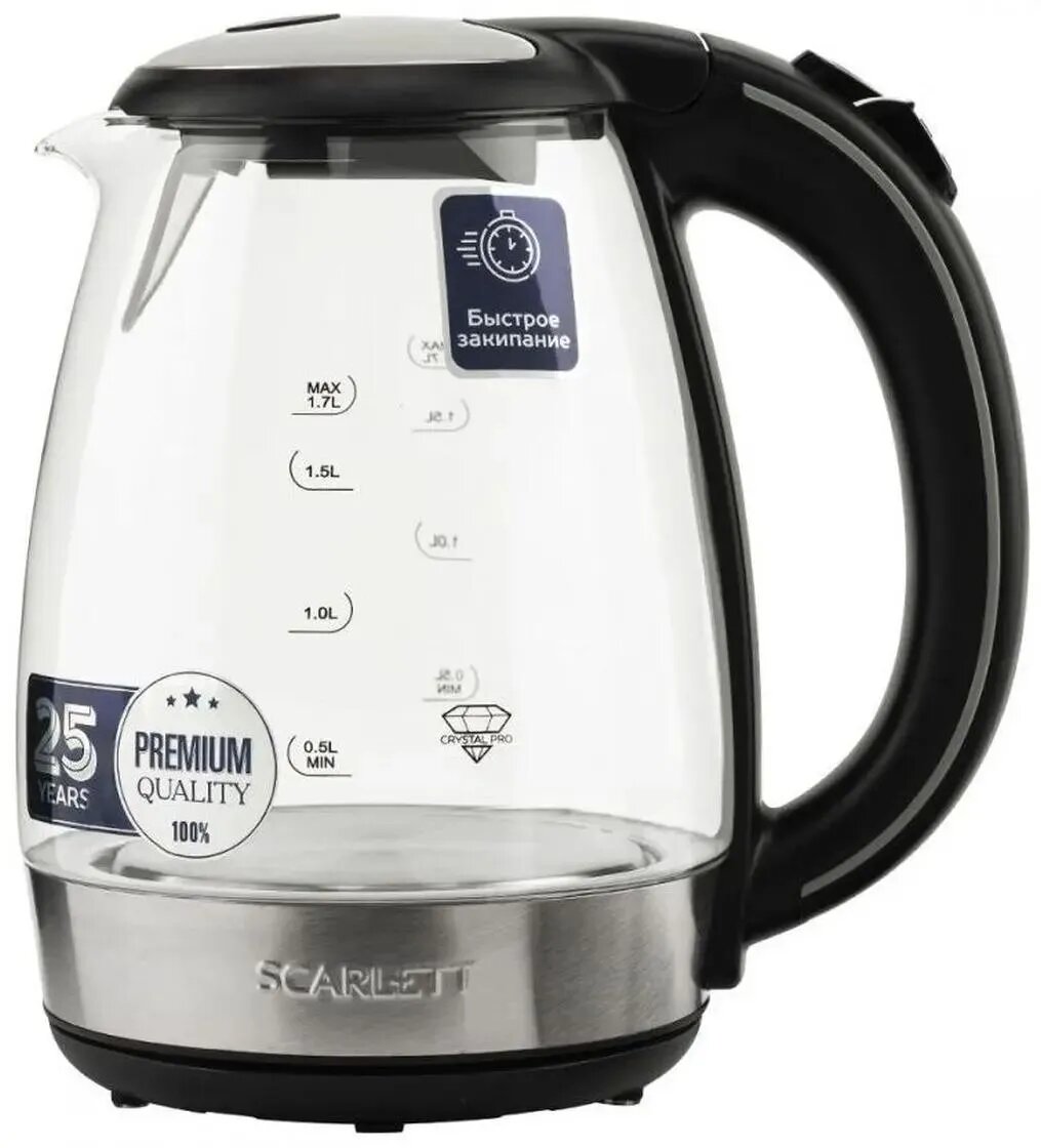 Чайник электрический Scarlett SC-EK27G93, 2200Вт, сталь и черный интересное:
